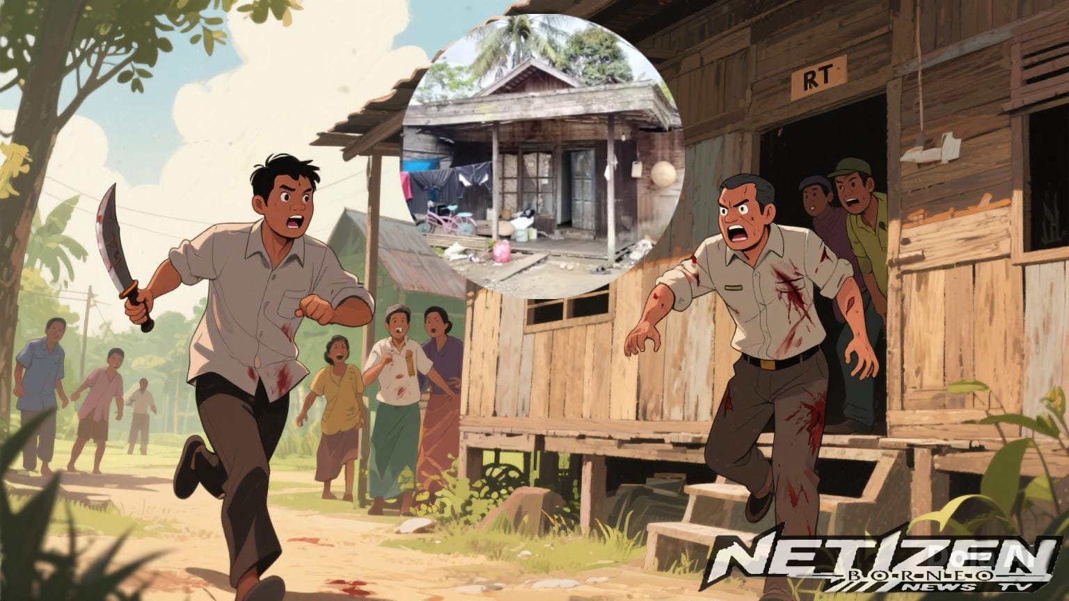 Ketua RT 2 Banua Budi, Abi, menjelaskan bahwa korban berlari menuju rumahnya dengan kondisi panik.