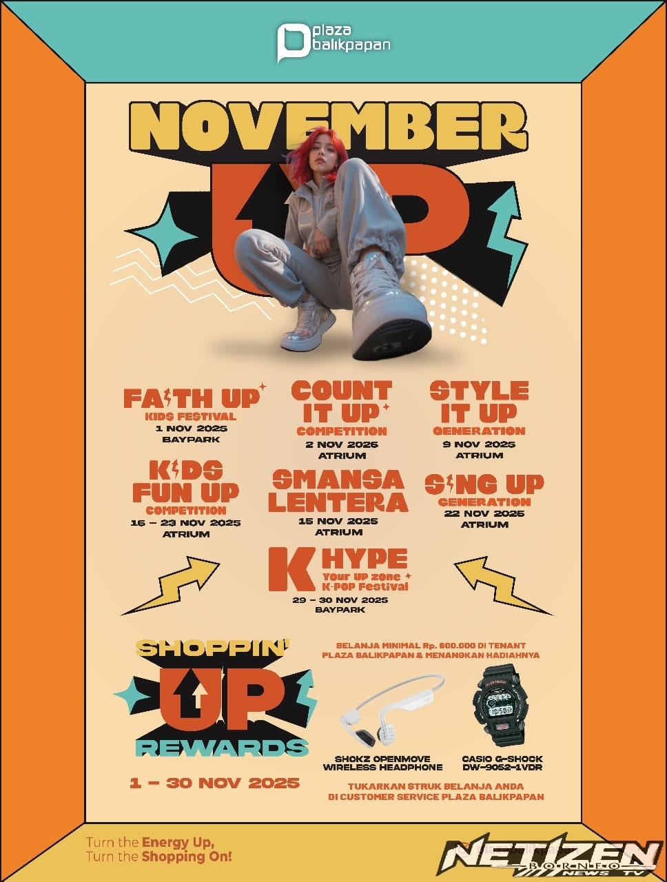 BALIKPAPAN — Plaza Balikpapan membuka bulan November dengan tema “November Up! Turn the Energy Up, Turn the Shopping On!”. Tema ini menghadirkan suasana segar dan penuh energi bagi pengunjung.